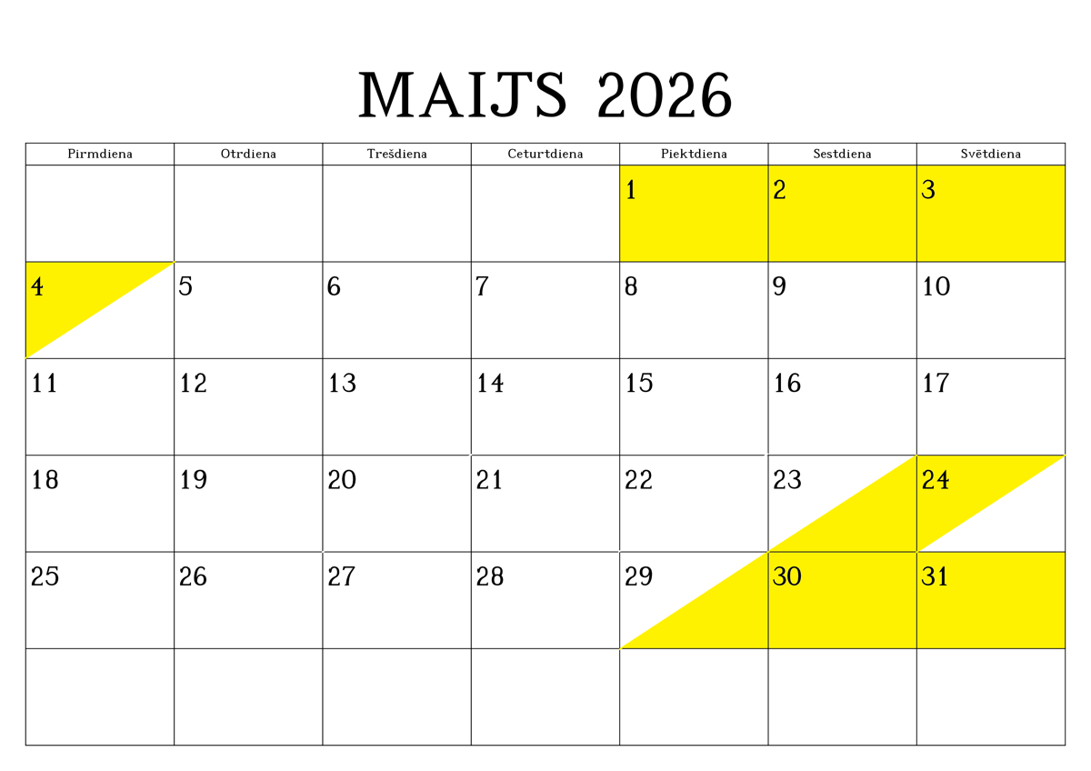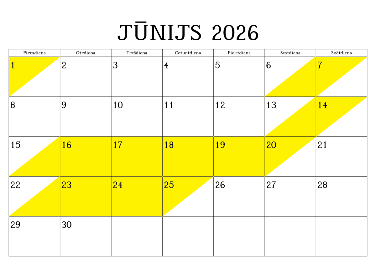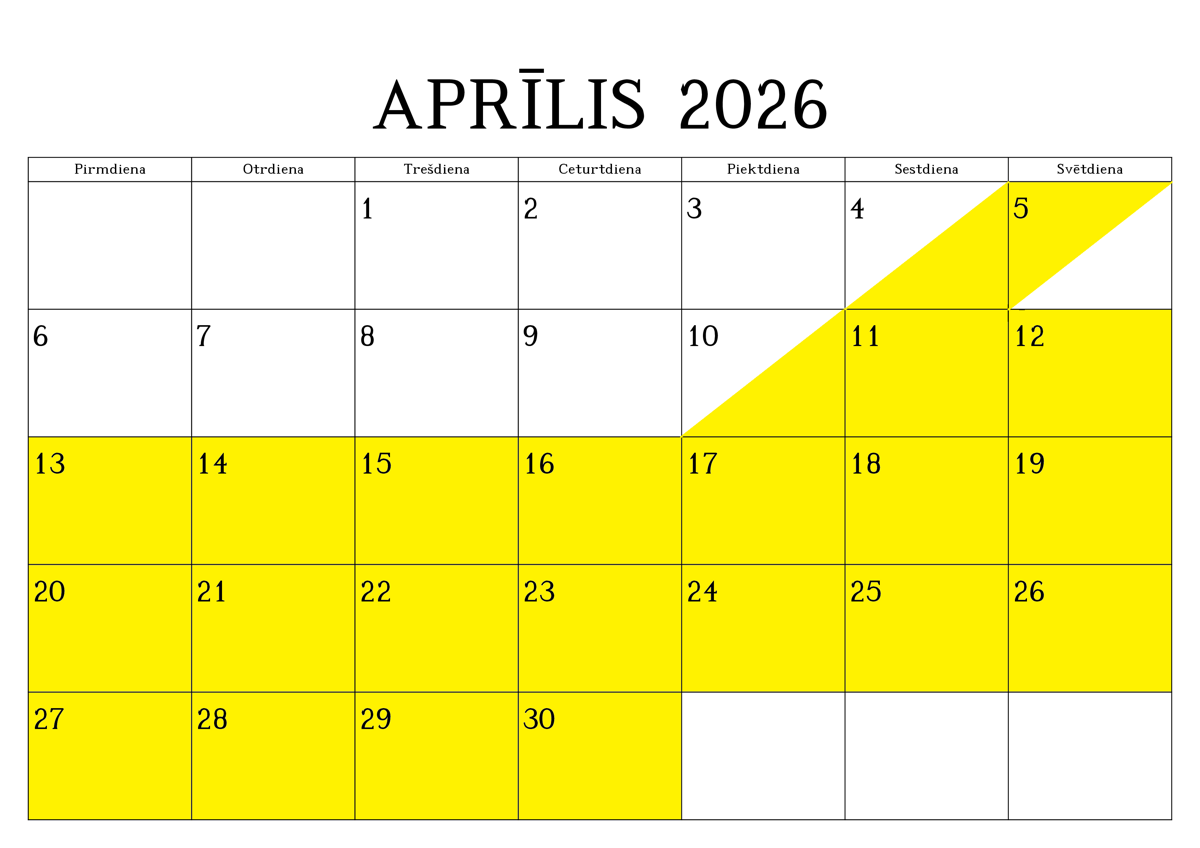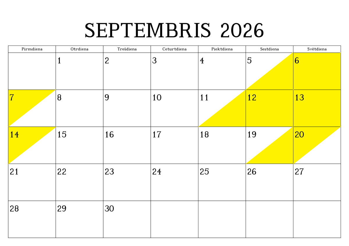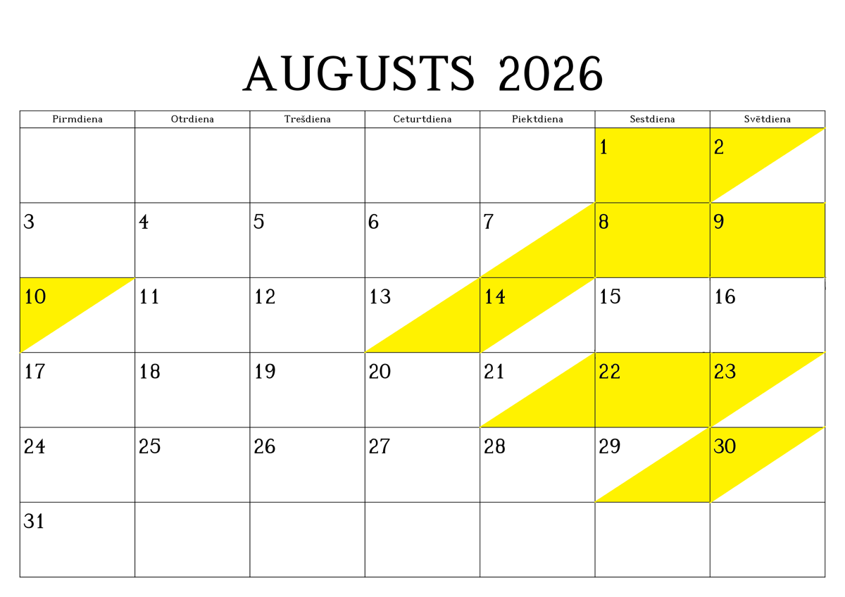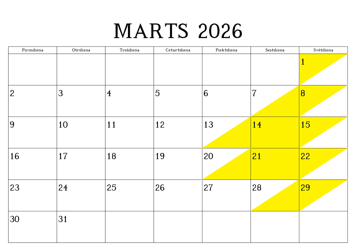 REZERVĒTIE DATUMI (iekrāsoti ar dzeltenu krāsu)