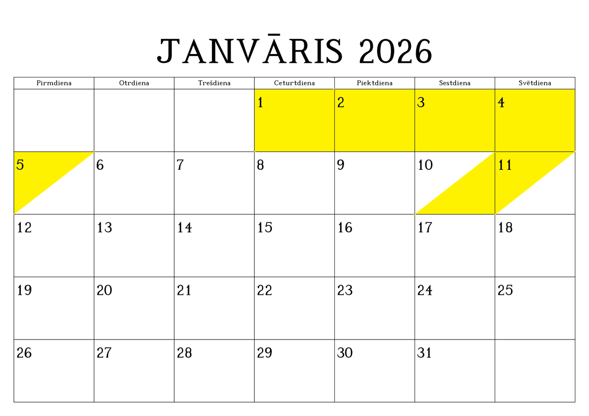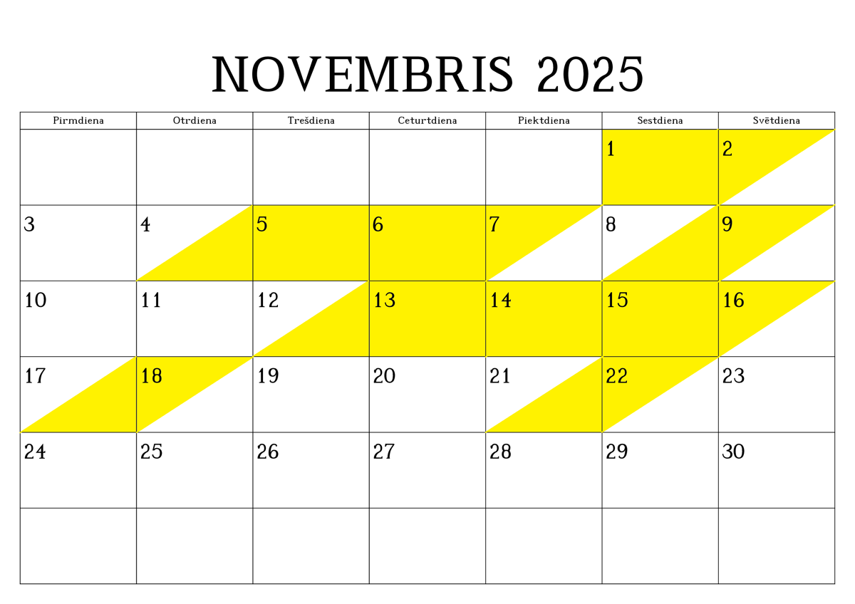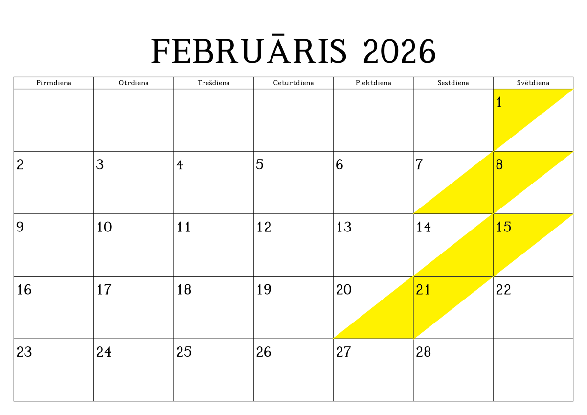 REZERVĒTIE DATUMI (iekrāsoti ar dzeltenu krāsu)