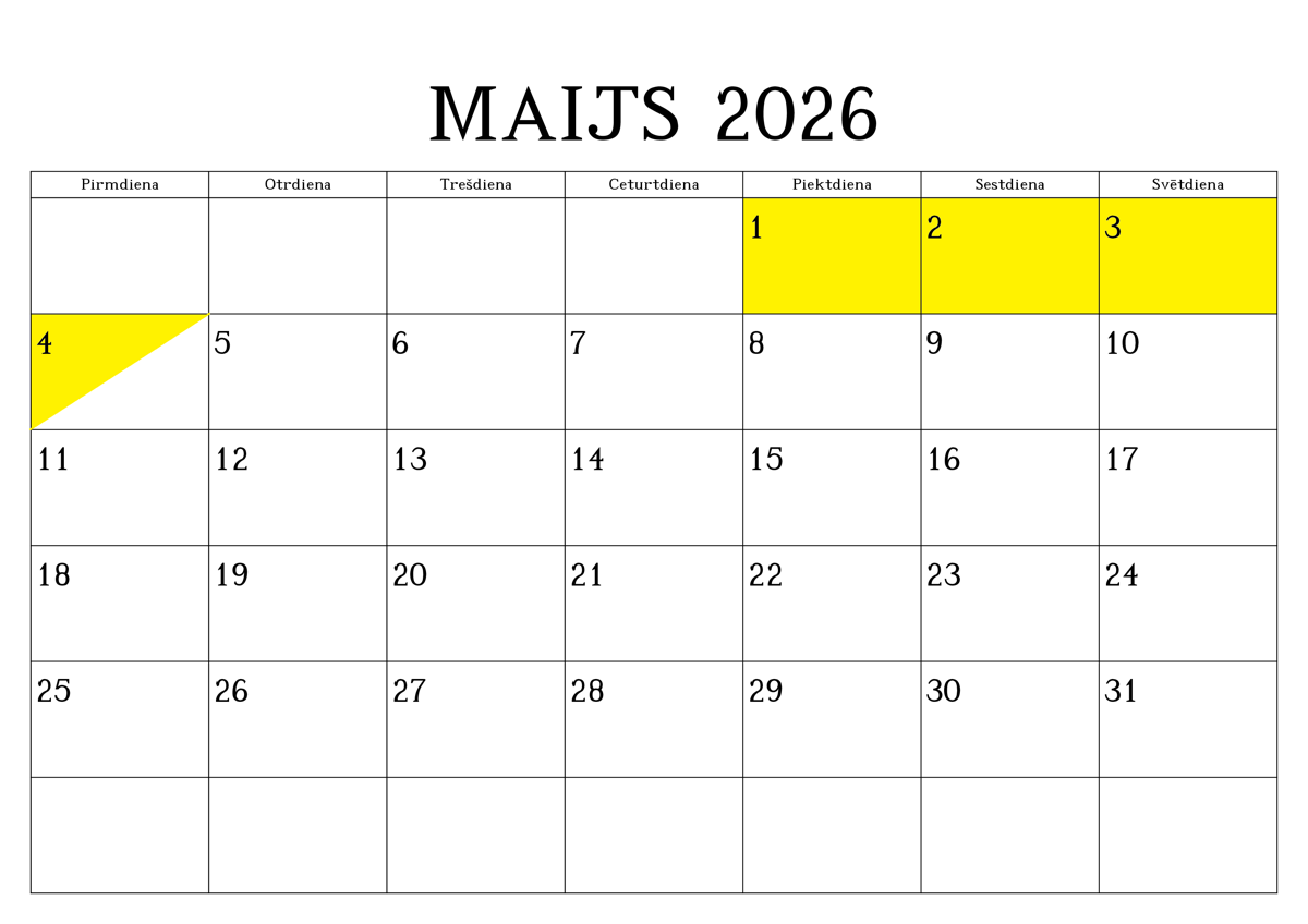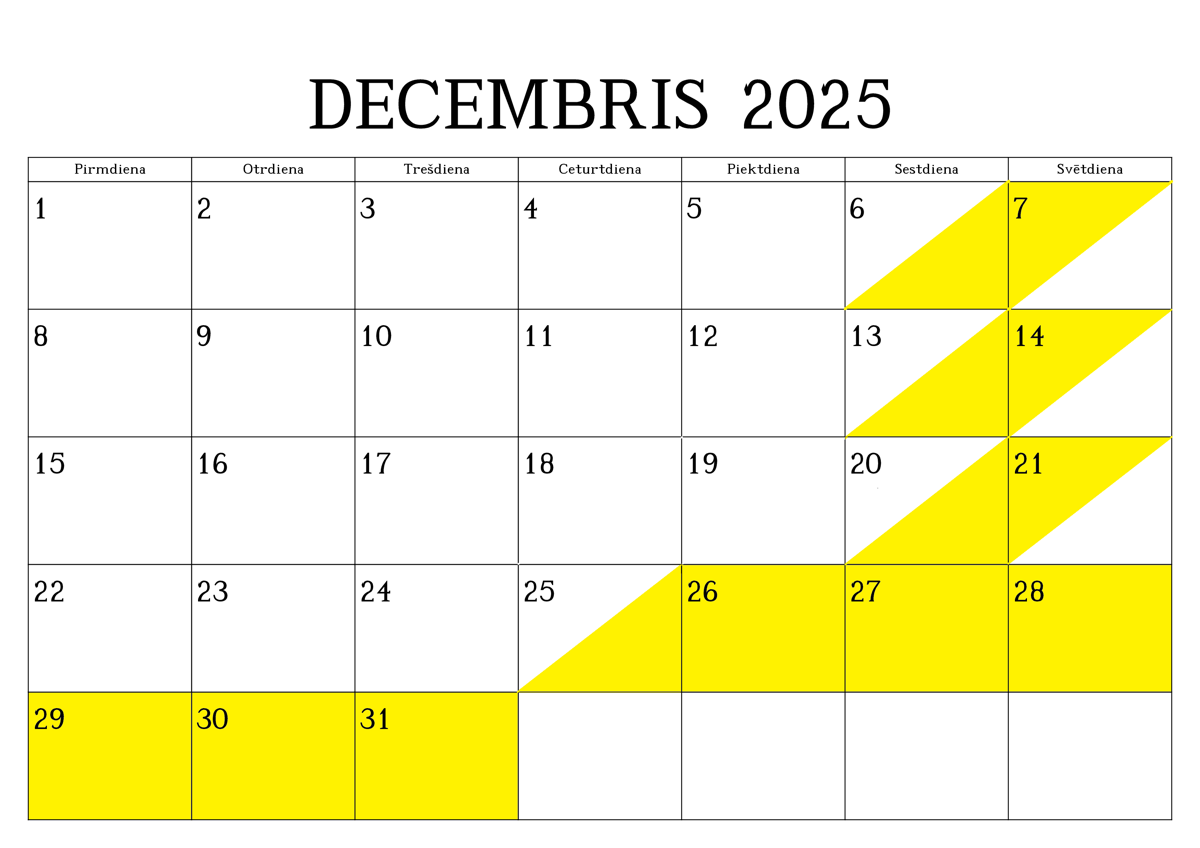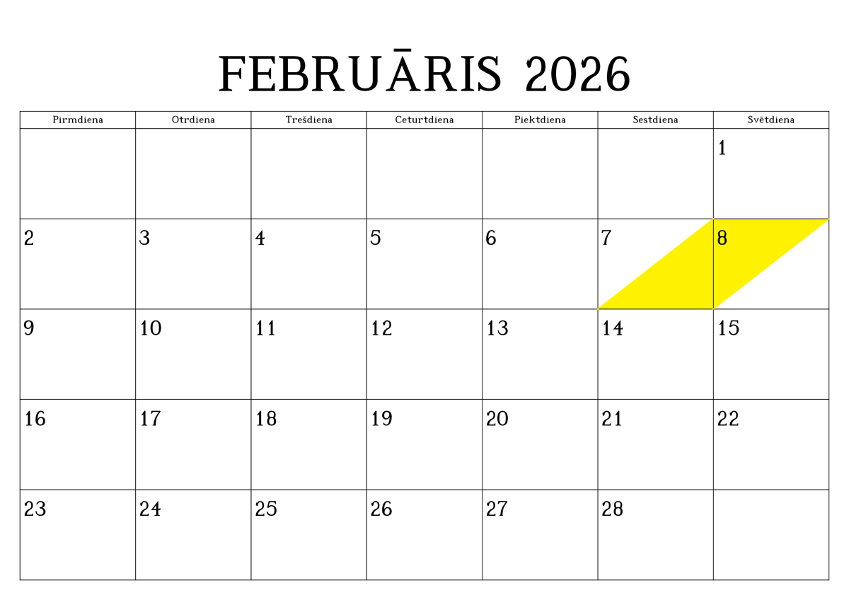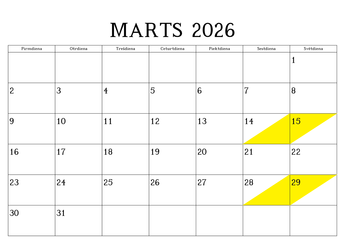 REZERVĒTIE DATUMI (iekrāsoti ar dzeltenu krāsu)